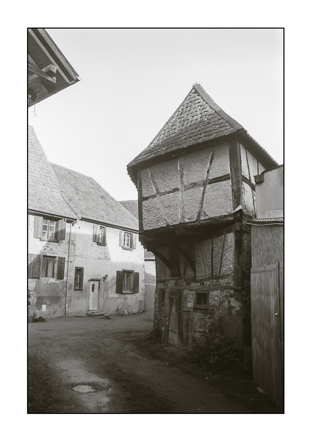 Bergheim, village vigneron fortifié au nord du Haut-Rhin IIIf+Summaron 3,5/3,5 Foma 200 dans LC29 Qui mieux que la pierre bavarde au fil du chemin se faisant, peut apporter le silence au promeneur A quoi bon se lever si c'est pour se laisser pousser par le vent La Pierre et le caillou coulent de la même façon dans l'eau |